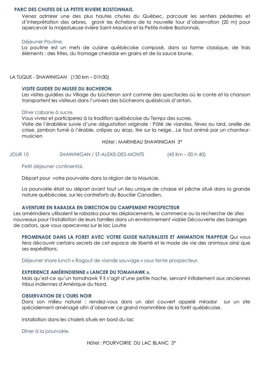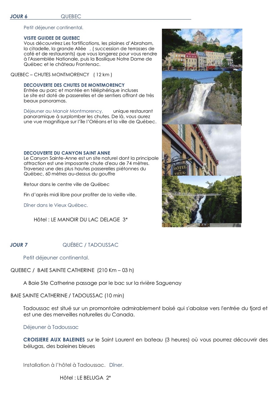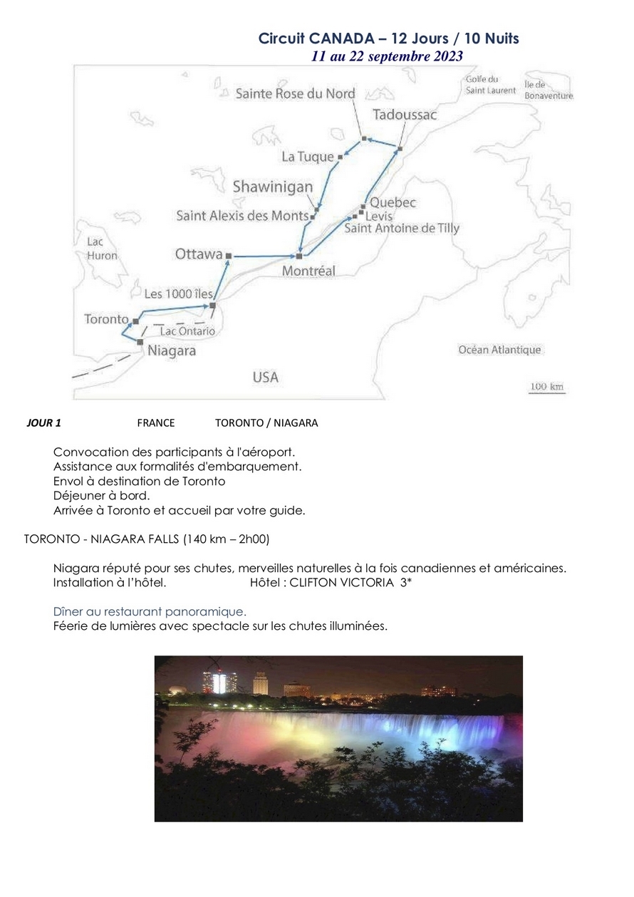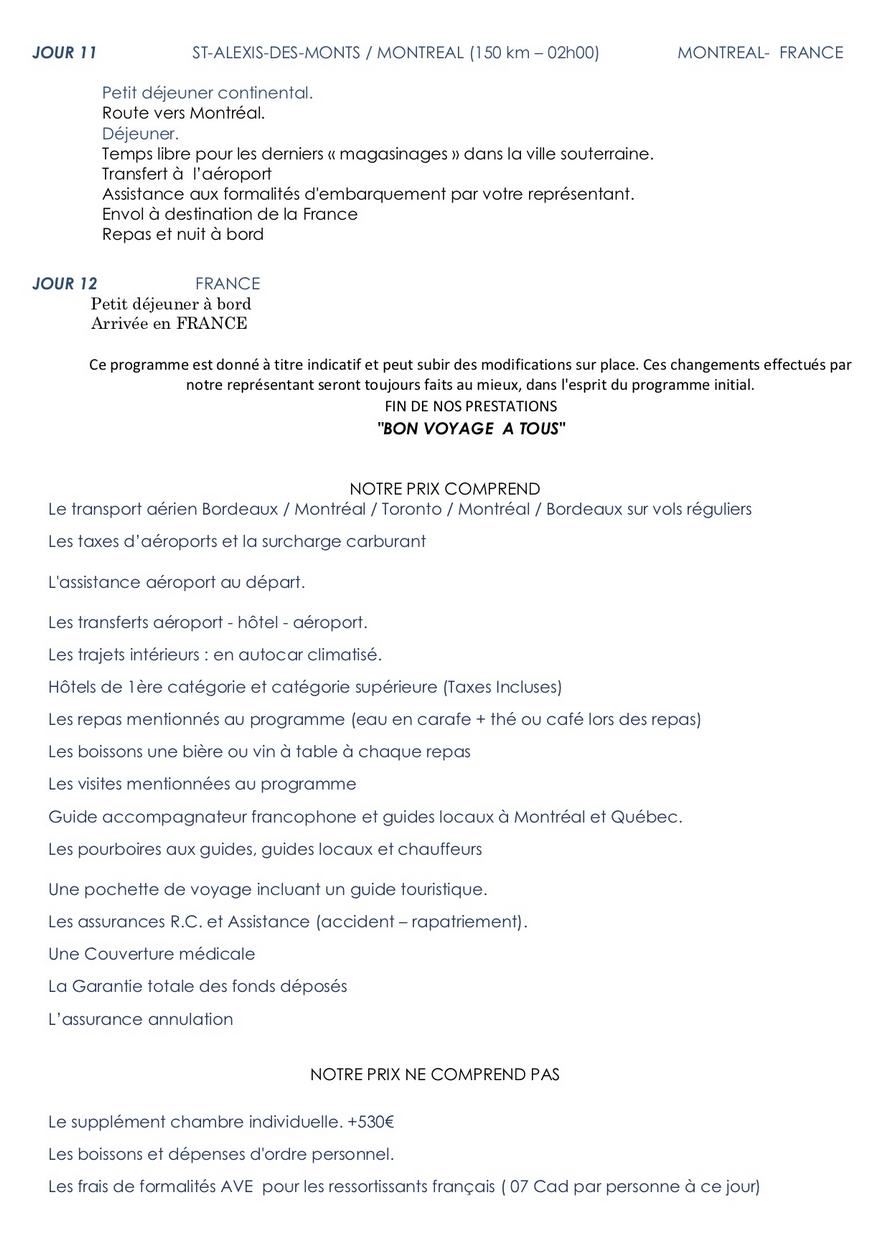 prix du voyage au Canada: 2650 euros pour 40 participants ou 2840 euros pour 30 participants Changement de date : du 12 au 23 septembre